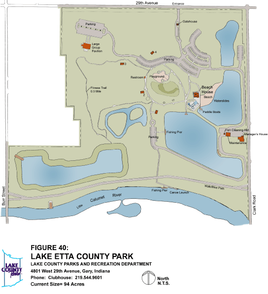 Lake Etta County Park is a 112-acre oasis tucked in the southwest corner of Gary. In addition to having access to the Little Calumet River, playgrounds, shelters, fishing, and a beach area for swimming. Lake Etta is also home to a beautiful banquet hall and wedding pergola. Not far from major highways and well-populated areas, visitors will find surprising tranquility perfect for outdoor relaxation.